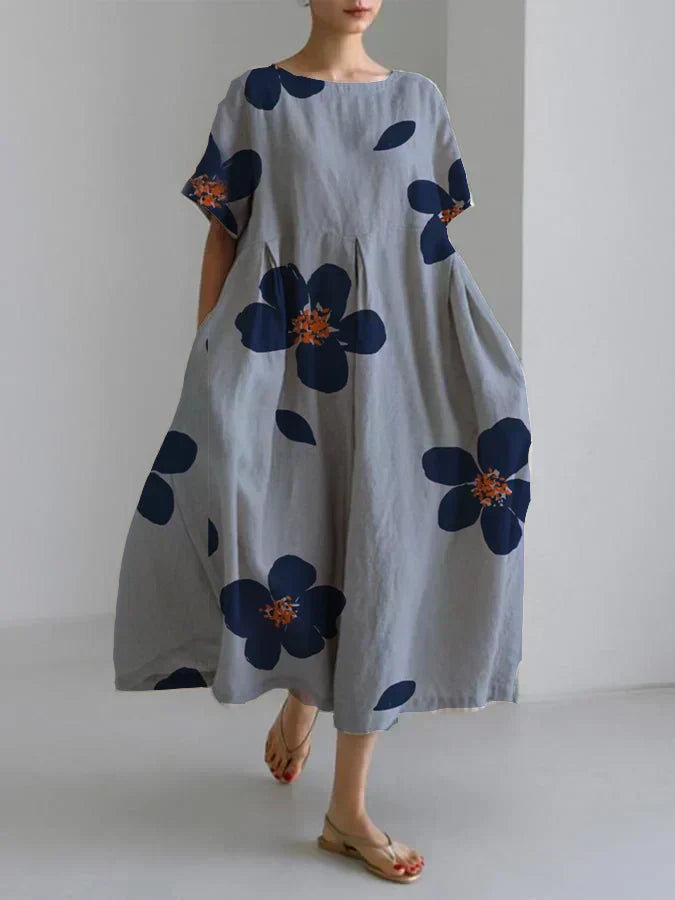 Lekka, zwiewna i łatwa do noszenia, Raffaella to idealna sukienka na słoneczne dni, kiedy chcesz czuć się dobrze bez zbytniego wysiłku. Subtelny kwiatowy wzór i miękki krój naturalnie podążają za Twoimi ruchami, podczas gdy lekkie fałdy i okrągły dekolt subtelnie strukturyzują sylwetkę. Idealna na spacer, lunch z przyjaciółkami lub po prostu, aby dobrze się czuć.